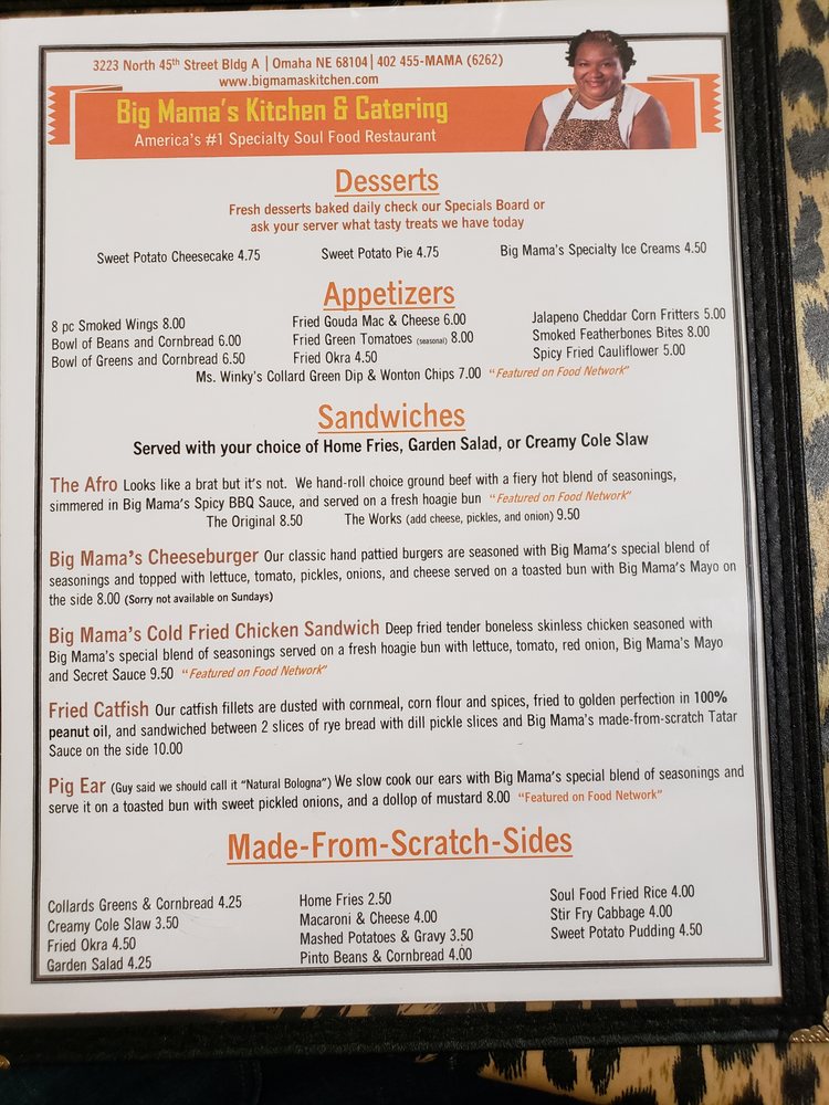 Welcome to Big Mama's Kitchen and Catering, a delightful culinary haven nestled in Omaha, NE. This restaurant offers a mouthwatering menu that pays homage to traditional American comfort food with a modern twist.